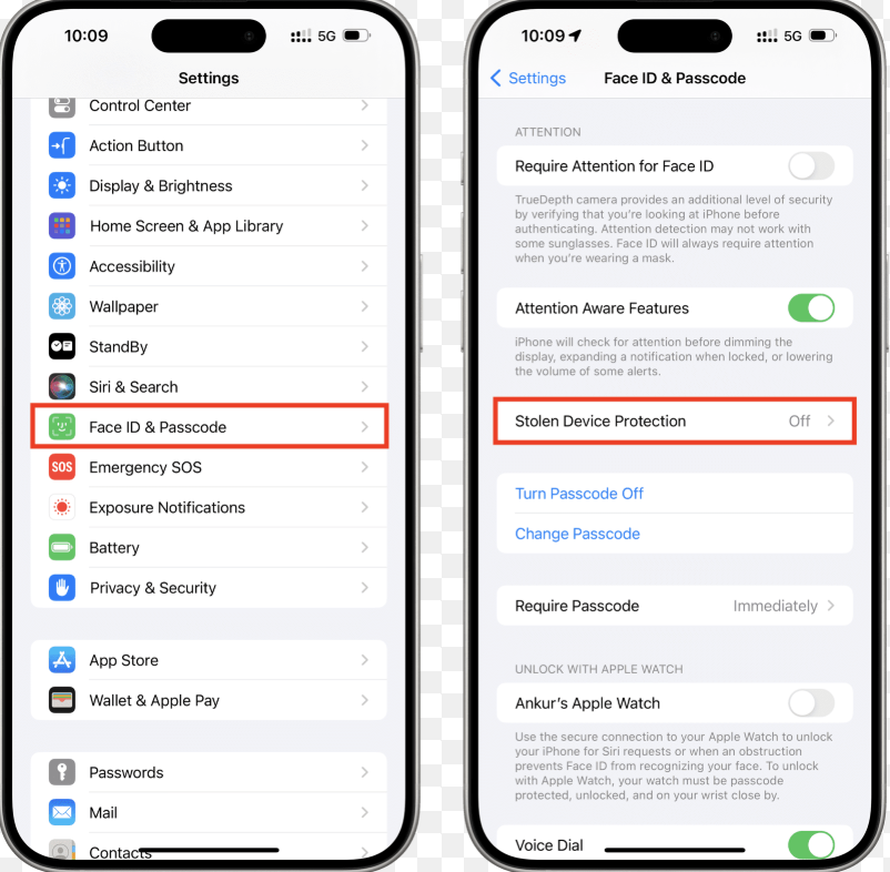 Under Face ID and Passcode settings, you will have the option to turn off Stolen Device Protection. This will require the use of Face ID.